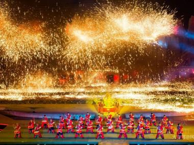 司徒小镇的千余人打铁花团队,是中国历史上的首次打铁花豪华阵容。夜幕降临时,千人赤膊上阵同时打铁花,炉火正旺、铁水火红...