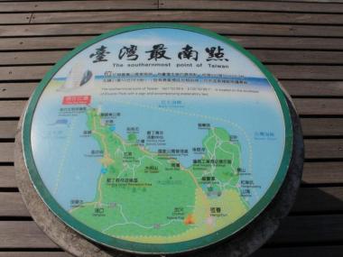 台湾最南点位置在垦丁国家公园境内,鹅銮鼻公园与龙坑生态保护区间,是台湾本岛陆地南点的一个水泥制标示,本处设置了木造眺...