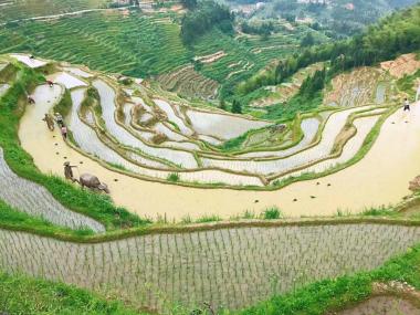 堂安梯田位于黔东南的黎平县,老的村寨坐落在层层叠叠的梯田之上,一路向下,沿着古道徒步穿越整片梯田,早晨炊烟缭绕与山涧...