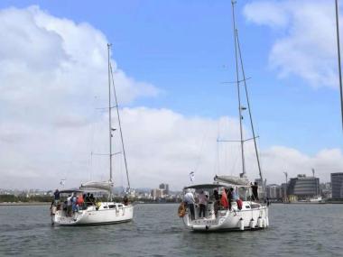 在三亚鸿州码头帆船港,扬帆出海,在蓝天白云下,听最纯粹的海浪声,帆船是集娱乐性、观赏性、休闲性于一体的海上运动项目。...