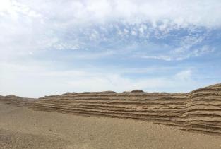 玉门关全程有交通车。遗址相互距离较远。景观车内看到的都是茫茫大漠。天热、地方干,每到个景点都要顶着烈日行走。到地方了也就是拍张照片。