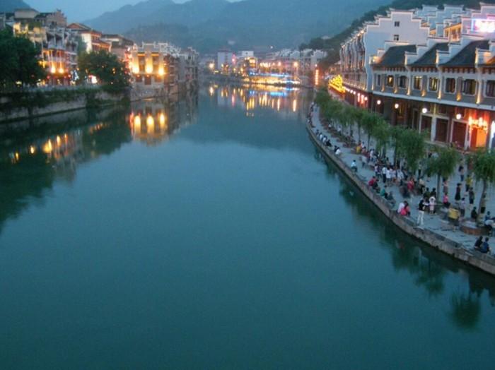 游舞阳河(下舞阳)书《高峡银河下舞阳》舞阳银河过施秉,观音码头乘游艇。观音峡内银河弯,群峦参天龙潭深。诸葛峡,龙王峡,东峡西峡井陌行。再下舞阳小三峡,姜公钓鱼怪石生。仙人晒鞋横石板,一足伸天巨石笋。八仙过海坐奇峰,金猴望月石猴灵。两岸山崖松柏翠,瑶池盆景天然成。阳光熠熠照金竹,浓淡相宜层次清。百湾百滩大飞水,高碑村上卧龙岭。高峡银河下舞阳,破镜重圆水中影。瀑布飞泻三叠水。喊泉必应显神灵。双峰并列山崖上,孔雀开屏站山顶。仰望高山月亮洞,仿佛一眼瞄天庭。弯曲彩廊舞阳河,如游三峡漓江景。游艇转过月亮湾,古城传来侗歌声,镇远两岸长龙宴,灯火辉煌奏芦笙。