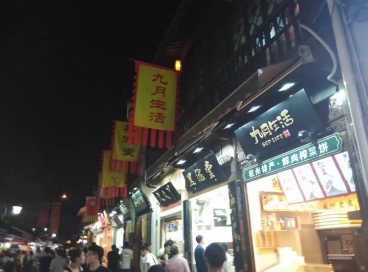 清河坊街 一踏入仿佛就回到了古代的夜市,各种宋,清的建筑布满这条街,真是不虚此行。 河坊街虽十分似古代街巷,但它又很好的与现代文化融合在一起。 看!乐器演奏吸引了一大批观众呢~ 这里有武大郎卖烧饼,时不时有太监在街上打更。只有你想不到,没有看不到的。 仿佛穿越回了古代体验了夜市生活。