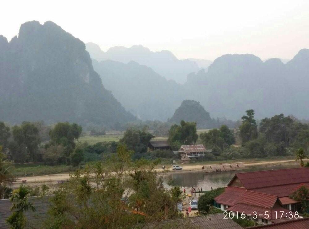 南松河,老挝‘废都’万荣的精华所在。民众过河靠东南亚特色的竹桥,机动车则可从镇内唯一的钢索简易桥过江,费用一个来回程两万基普。