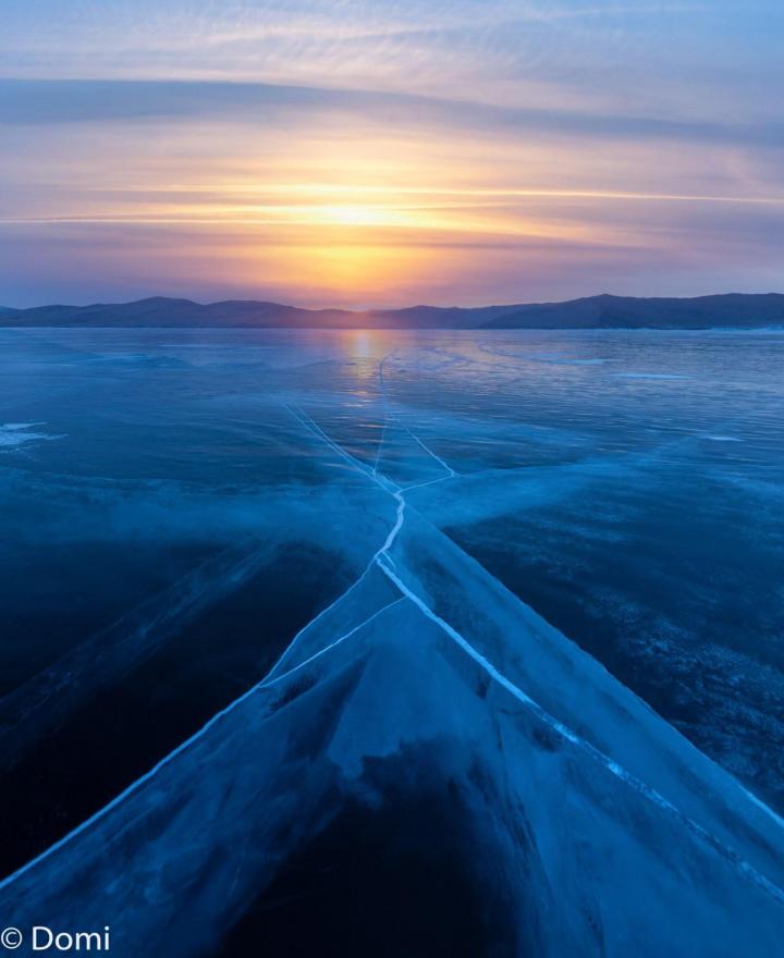 李健的歌声中,贝加尔湖是清澈宁静的;席慕蓉的文章中,贝加尔湖是深沉隐忍的。当我踏上西伯利亚的土地,抬眼望去,天高云淡,内心有一种雀跃在升腾,那是一种莫名的欢欣。漫步贝加尔湖畔,任风吹衣衫、发丝零乱,看着大块的蓝冰、探索深邃的冰洞、细数凝固的气泡,都是不同的乐趣…… 这里是苏武牧羊的北海,这里是成吉思汗的后花园。 狭长弯曲的贝加尔湖,像一轮弯月镶嵌在东西伯利亚南缘,是全世界最深、蓄水量最大的淡水湖。 贝加尔湖是深蓝色的,深邃得像眼睛,贝加尔湖是迷人的,它一点都不张扬,是安静的美。 冬季的贝加尔湖很是迷人,湛蓝的湖水变成了广袤的冰川,封冻的湖面仿佛让人来到了神奇的极地,无数的冰块、冰挂、冰柱、冰洞,让人慨叹大自然的鬼斧神工。