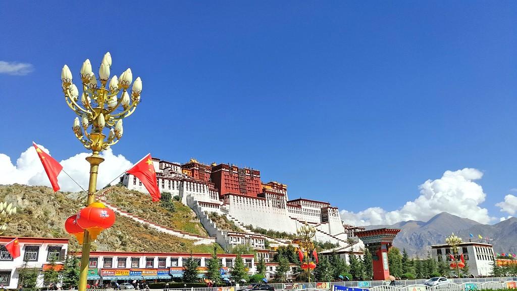 药王山,藏语称:夹波山,意为:山角之山。位于布达拉宫西南侧,海拔3725米,与布达拉宫所在的红山咫尺相对,两山之间有北京路穿过。其半山腰有观景台,是拍摄布达拉宫的最佳位置之一,同时也是50元人民币的背面图案拍摄地。