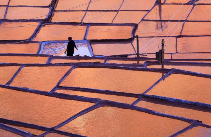 西藏盐井古盐田非常大,在盐田下穿梭前进,寻找各种角度拍摄都非常好看,为了拍照可以在这里呆很久,因为海拔低,走起来也不费力,如果能路过这里,一定要来看看啊。