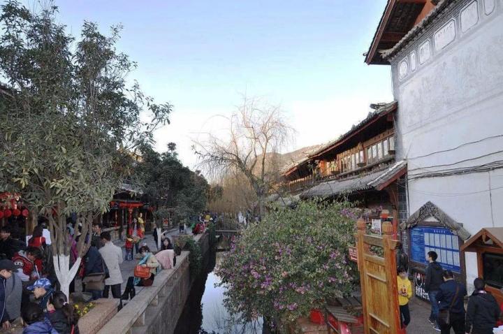 四方街是丽江古城的闹市,附近店铺、美食街、酒吧街密布,游人如织,是古城内热闹的地标。无论是白天还是夜晚,在四方街都不会感到寂静。白天,游人们在此流连、当地人在此聚会碰头,每天下午一群穿着民族服装的纳西老太会在这里跳舞;晚上,这里是欢乐的场所,你可以围着篝火跳锅庄,也可以跟着流浪歌手的节奏一起摇摆,随心所欲自由自在。
