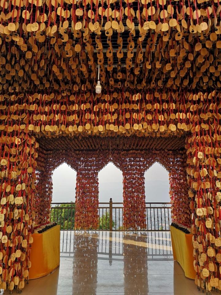 勐焕大金塔总的来说是可以一看的地方。勐焕大金塔位于德宏芒市孔雀湖附近的山上。大金塔很漂亮,里面充满了浓郁了的西南佛教特色。大金塔对面是大银塔,晚上去看效果最好,不过只有泼水节才能进去。