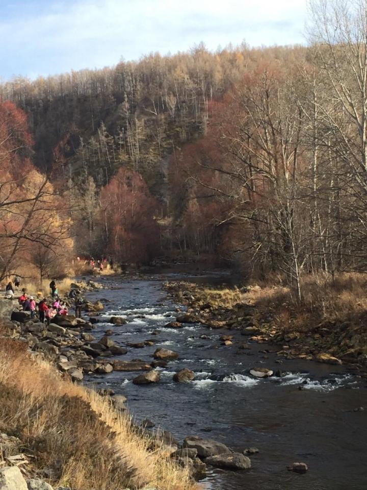 三潭峡大峡谷到大门二十五公里,依旧很漫长,出了大门,必须原路返回,一头转入林间土路,路面起起伏伏,前后车在这路上慢慢汇集在了一起,零星的车变成了车队,浩浩荡荡,车不分好坏,只有颠簸,没有超车。该景点主要沿着哈拉哈河,号称有三个潭,尽头是哈拉哈河的源头,几近枯竭