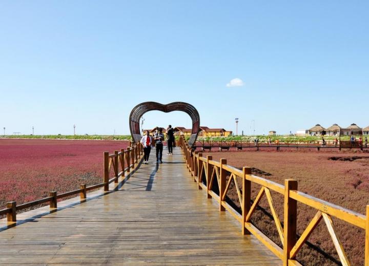 盘锦红海滩景区非常大,大家去之前建议查好潮汐时间,一定要等落潮再去。十一的时候很非常多,景区非常大,只能靠观光车移动!景区是沿海建的,先要看好观光车的景点,建议先坐车到最里面,然后再坐车一个景点一个景点游览!不要,到第一个景点就下去了,因为人非常多,下去就不好上车了!景区管理还是有点乱。