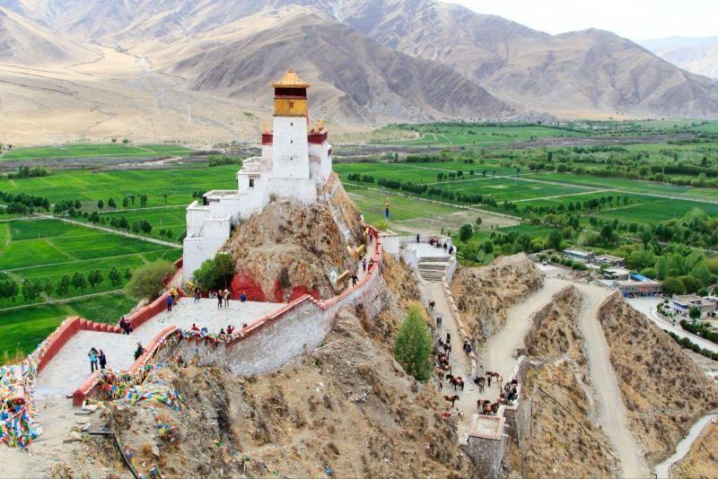 布拉康很小,建筑可分为三部分:碉楼式建筑物、殿堂、僧房及附属建筑,很快就可以看完。然而来到雍布拉康已经不是纯游览寺庙了,站在山上很高处的塔楼凭高远望,雅砻河谷风景和田园风光尽收眼底。