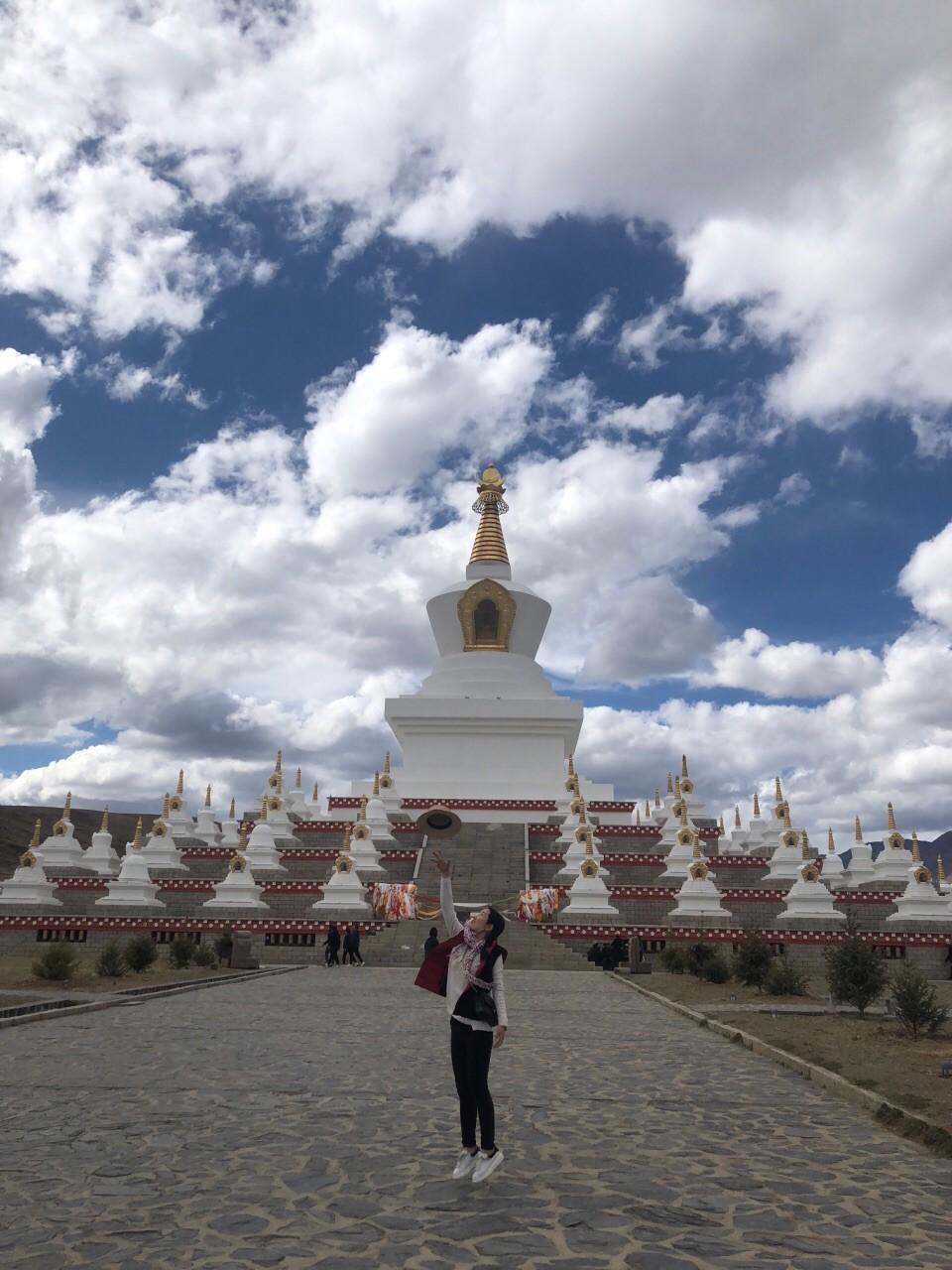 尊胜塔林为甘孜州最大的白塔,据说,当年释迦牟尼涅槃之时,众多眷属祈求世尊法身长驻,佛陀便嘱修尊胜塔,并亲自加持开光,以此代表法身。蛮漂亮的,也蛮大气的,在清晨朝阳或黄昏夕阳下更喋喋生辉。