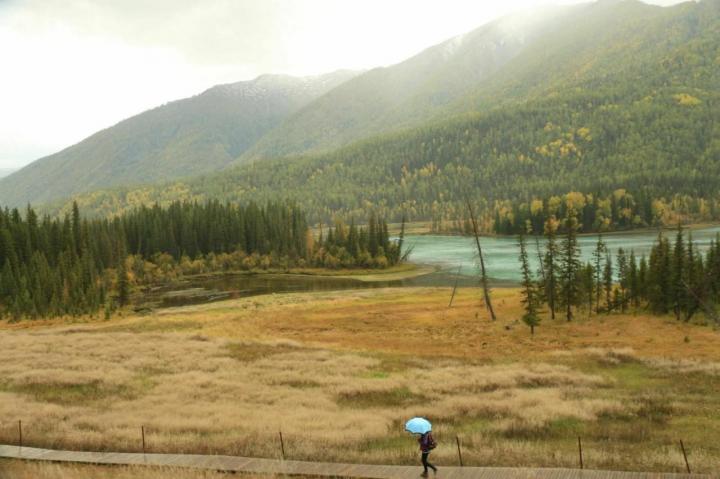 喀纳斯位于阿勒泰地区的布尔津县境内的深山密林中,距离首府乌鲁木齐约800公里,是新疆最有名气的优美风光地带之一。 在这个美丽富饶、神秘莫测(蒙古语“喀纳斯”的含义)的湖边,你能够看到清澈宁静的湖水,湖水还会随着季节和天气的变化而时常变换颜色。环湖四周混合了云杉、冷杉和西伯利来落叶松的原始森林,阳坡被茂密的草丛覆盖,不同的植物群落层次分明,每至秋季更是万木争辉:金黄、殷红、墨绿各呈异彩。 除此之外景区内还有一些当地图瓦人的民居、帐篷等可以住宿。如果想早起看到神仙湾的晨雾美景,住宿在景区内是个不错的选择。 我是初秋去的喀纳斯,那日天空下起了蒙蒙细雨,喀纳斯湖升起了一层层薄雾,好似仙境。
