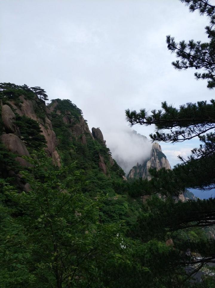 天都峰号称黄山第一峰,这个第一可能是高度,论起来外表的险峻巍峨,足可以与华山媲美,这里总是让我想起来陡峭的千尺幢,而且只有一条小路可以进去。
