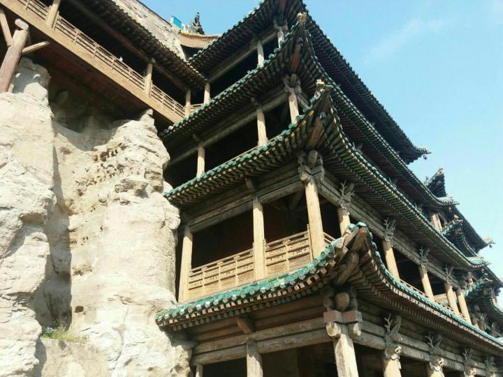 云冈石窟交通比较方便,乘坐公交可以到达,下来要走一段路进景区。云冈石窟的洞窟相对龙门石窟要少很多,规模也要小很多,这大约与北魏迁都及其历史地位有关,但部分洞窟保存相当完好,佛像及壁画色彩艳丽,造型多样,值得观赏。