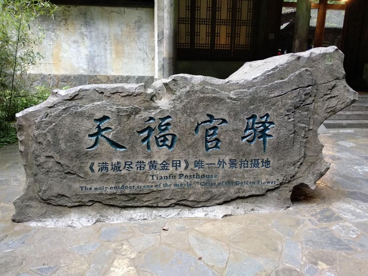 在天生三桥的天龙桥的坑底院有一座青瓦灰墙的古色古香的四合院,就是天福官驿。院内都为木质结构,风格古朴典雅。是满城尽带黄金甲电影的外景拍摄场地。
