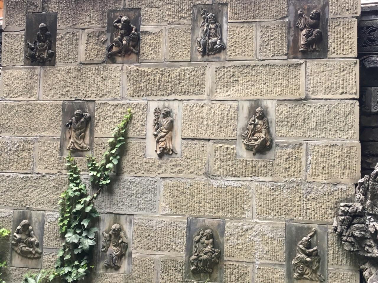 罗汉寺是重庆闹市中心的一处古寺庙,就在地铁1号线,6号线的6号口出来就是。10元门票,但应当是5点关门吧,没赶上进去,里面两侧有罗汉雕像,是宗教活动场所,从这里出来到解放碑(左)或者到洪崖洞(右)都是过天桥10分钟的路。