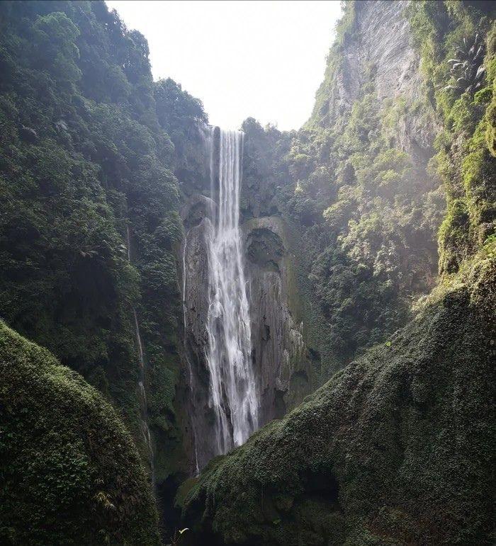 通灵大峡谷有着独特的地质条件,穿过五光十色的溶洞,慢慢下到谷底,再沿着溪流逆行而上,就来到它的源头——通灵大瀑布,更神奇的是瀑布下面还有一个岩洞,进到里面好像水帘洞一样,非常凉爽。