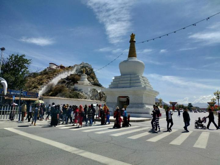 药王山在布达拉宫广场旁 ,爬上小平台之后是拍50元人民币背面的景观的地方 ,可以举着人民币来一张打卡照片哈 。太阳落山的时候景色最好 ,怕的高度也不是很高。