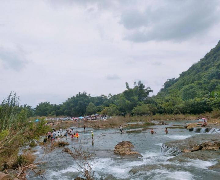 柳州夏天凉快的好去处,鹿寨响水瀑布算是香桥岩融公园的后段吧,中间隔着石林,在中渡古镇可以坐竹排来回,小瀑布而已,可以在瀑布顶玩水,景色比较单一,旁边有农家乐,可游泳,可划船,水又凉快。特别适合带小孩子过来玩。