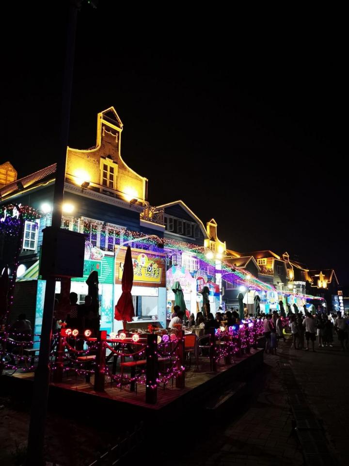乐亭月坨岛离北京不远,周末可以去玩玩,从北京开车三多个小时可到。自驾车需要停在三贝明珠码头停车场,停车20元不限时。然后买门票+船票坐船去岛上。这天气轮渡船开着空调和窗户也很闷热,好在坚持一下,二十分钟到岛上。岛上有一条美食街,海鲜烧烤为主,还有不同的酒店,特色还是小木屋,周末价格比较贵,面积不大。酒店有小的游泳池和温泉池,海边浴场可以游泳,人不是很多,海水还算干净。晚上等都亮了,天也凉快点了,各个饭店坐满了人,喝啤酒吃海鲜,夜景很美。