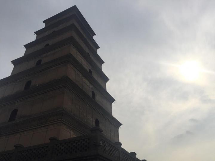 走不久就能看到大雁塔,需要30元买一张登塔门票。如果没有请讲解员,可以扫微信,听电子语音解说。大雁塔是玄奘法师从印度取回真经后,奏请朝廷建造的,为了藏经并翻译经书。年代久远,塔内不太能看出多少当年的样子,一层层登到顶,倒是可以尽览城市风光。当然,人有些多~