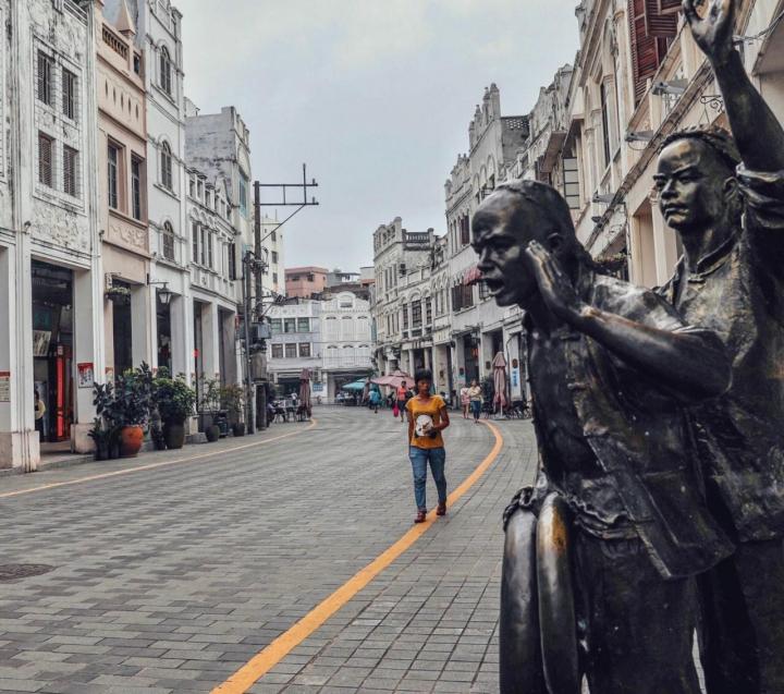 海口骑楼老街主要由得胜沙路、中山路、博爱路、新华路、解放路、长堤路等老街旧巷组成,覆盖面积约2平方公里,总长4.4公里,这里的骑楼大多是上世纪初从南洋归来的华侨借鉴当时的南洋建筑风格所建,共有大小高矮不一的三、四层高的老建筑近600栋。骑楼老街不仅是当时的建筑住所,更承载了海南人漂洋过海打拼的辛酸史。