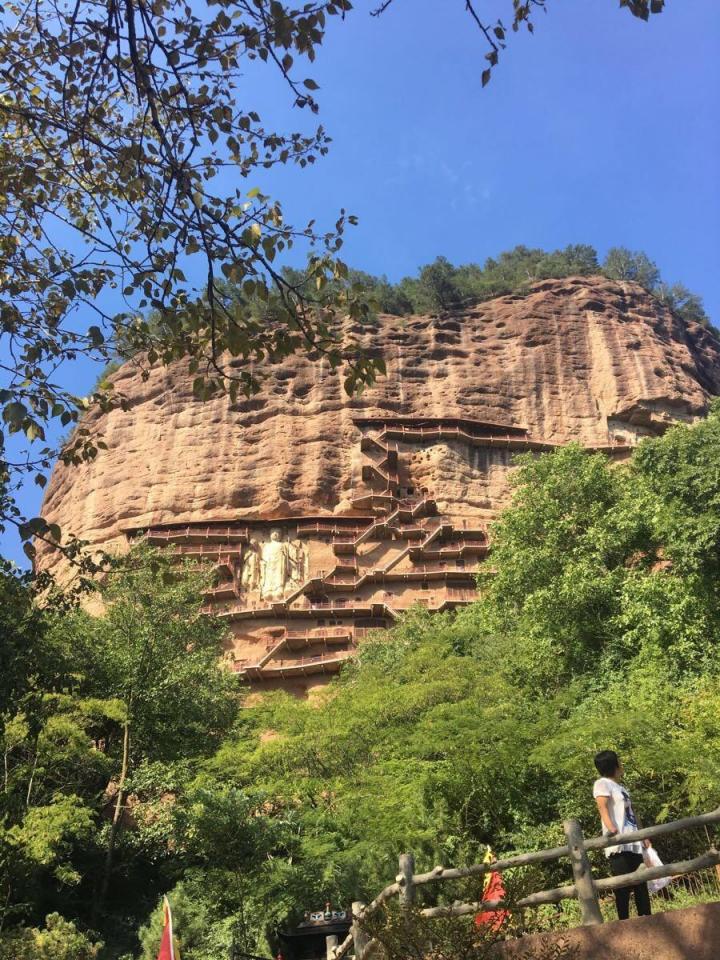 去年九月伊始前往天水的麦积山石窟,也是此次听闻麦积山石窟是中国四大石窟之一。可能相比其他三个名气上略逊一筹,不过游览之后亦觉是个值得一去的地方。我们是自驾游直接将车开到了麦积山石窟B区景区入口处,此处也可乘坐从天水市火车站直达景区的公交车。九月的天蓝的不像话,阳光灿烂。进入景区购买门票和缆车票,乘坐景区内电车一路蜿蜒而上,周围是特有的丹霞地貌的水成岩。到达山脚下仰头,麦积山形如麦垛,遥遥望见山体间开凿的各色佛像,以及穿梭其中的层层栈道。整个山体并不大,但是沿着栈道往上,确深陷于大大小小的岩洞中,麦积山石窟的塑像整体还算保存的较为完整,虽然一部分遭受了天灾打击,或腐蚀或重塑,但大都保有独特的原味,石窟高低起伏数不胜数,当然沿着栈道一路向前也是独具风味。不得不感叹今不如古的伟大创造。