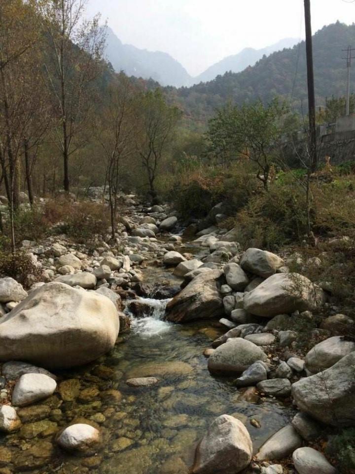 终南山范围好大,没有去景点,是沿着西安市往南有条进山的路,大约一小时,沿途有水流一直围绕公路左右,植被茂盛,周边都是各种饭店民宿吃住不愁,我们住的地方到秦岭分界点还有十几分钟车程,夏天很舒服。