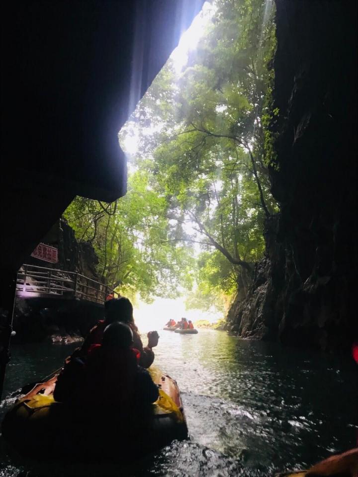 据说古龙山大峡谷在水季还是很刺激的,庆幸去的时候是枯水期,只是辛苦了船工。一路漂流,山青水秀,穿越溶洞而出的瞬间,阳光洒落,很有柳暗花明之感,真的非常值得一看。