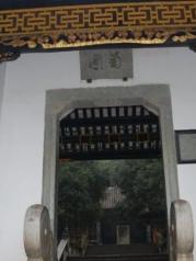 进入桃花源古镇景区,首先看到的便是那片桃树林,别说桃花了,连片树叶都看不到,只能望着如烟的枯枝想象一番桃花盛开的胜景。转过桃林便是掩藏在其深处的穷林桥。涉过穷林桥,可以看到不远处有一座廊庑环绕的建筑,这便是桃花源内著名的菊圃。