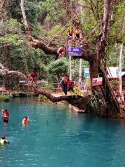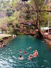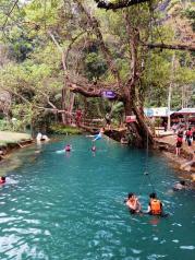 老万万荣自驾游好去处坦普坎溶洞攻略:1.坦普坎溶洞离镇中心7公里,有突突车可以乘坐,也可以骑行或步行;2.大门票1万基普,里面有各种户外活动;3.高空飞索zipline20万一个人,5个人以上每人15万;4.重头戏是探洞(坦普坎溶洞,很深,可以慢慢爬到上1小时)和跳水(Bluelagoon),免费;5.其它儿童水上设施一般都是1万基普。