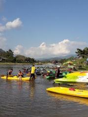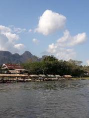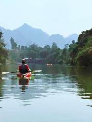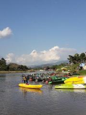 老挝万荣的南松河,每天有很多游客坐着轮胎顺着河漂流,更多的是划kayaking沿着河从上游向下游漂流。围绕在万荣周边,河道两岸风光秀丽,很适合漂流。