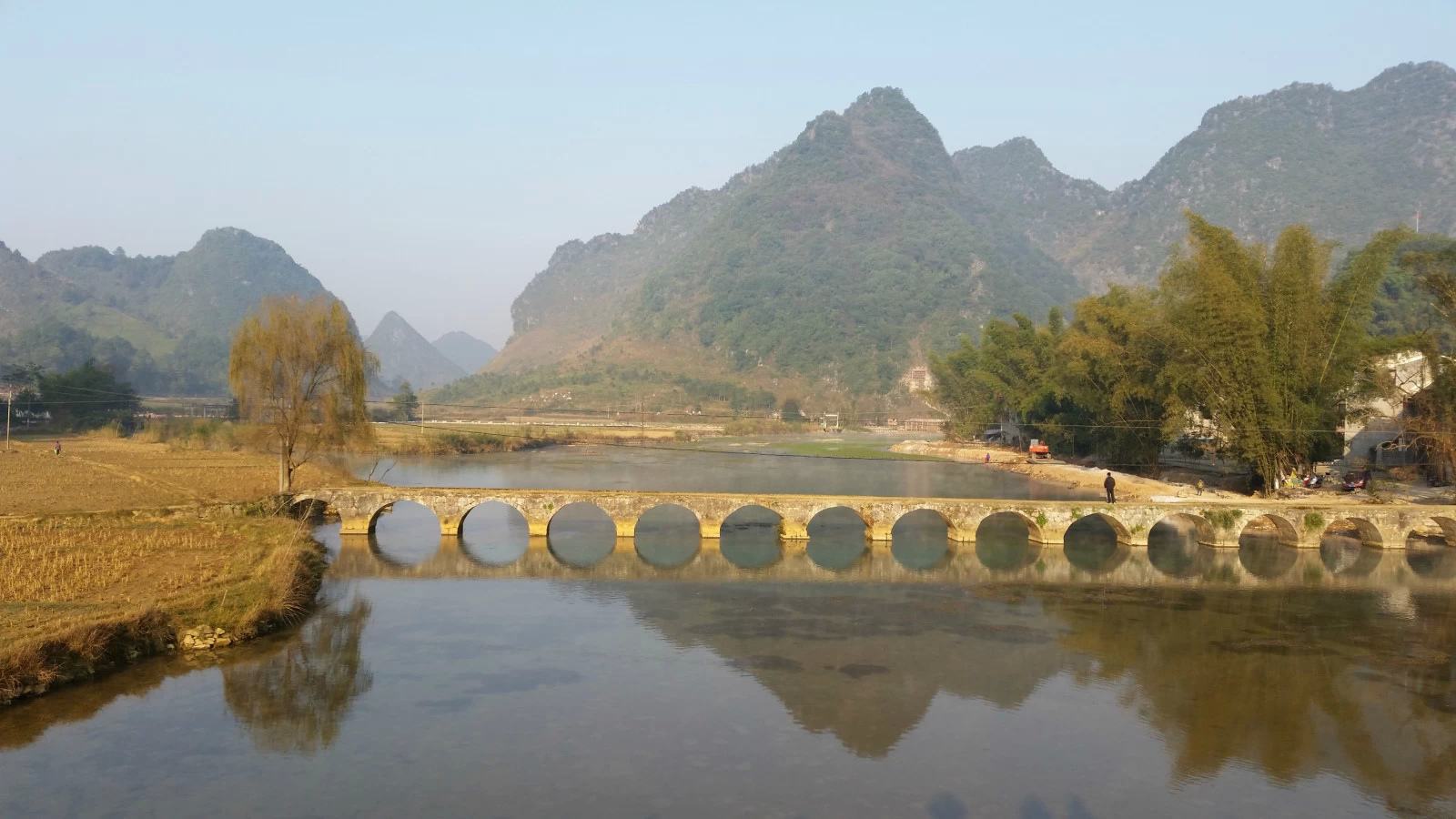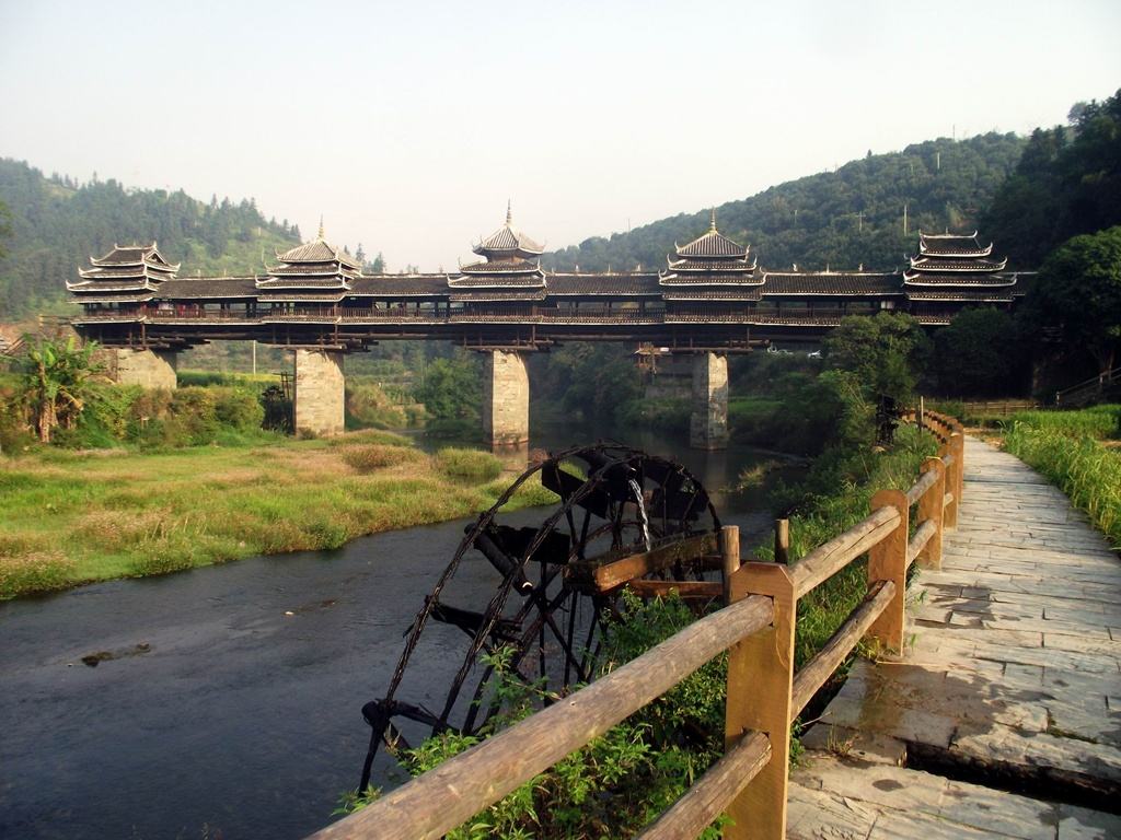 良口有著名的人和风雨桥和三王宫,同乐则保留有侗族传统的靛蓝布浸染工艺。