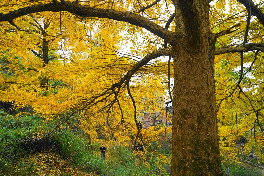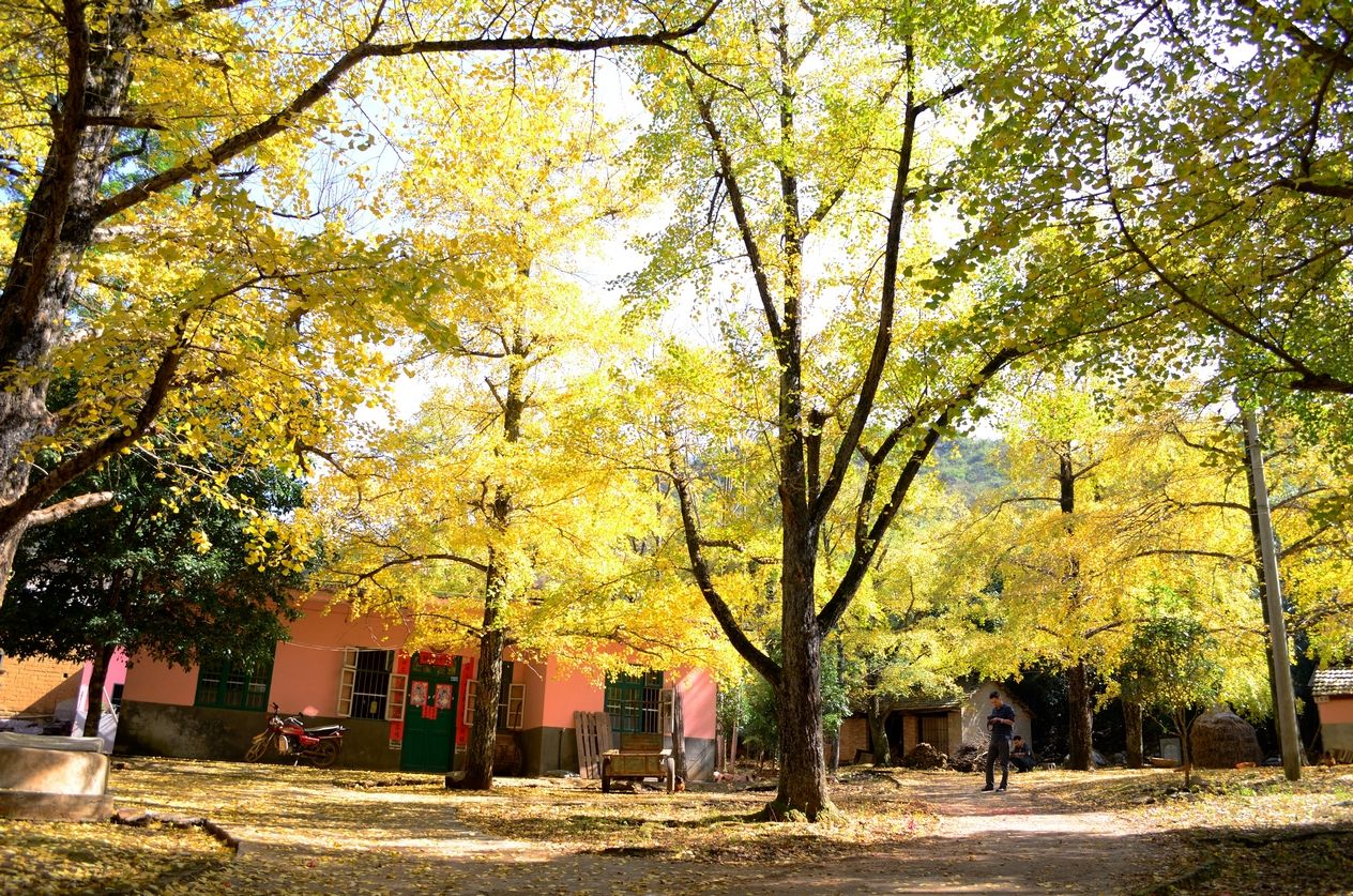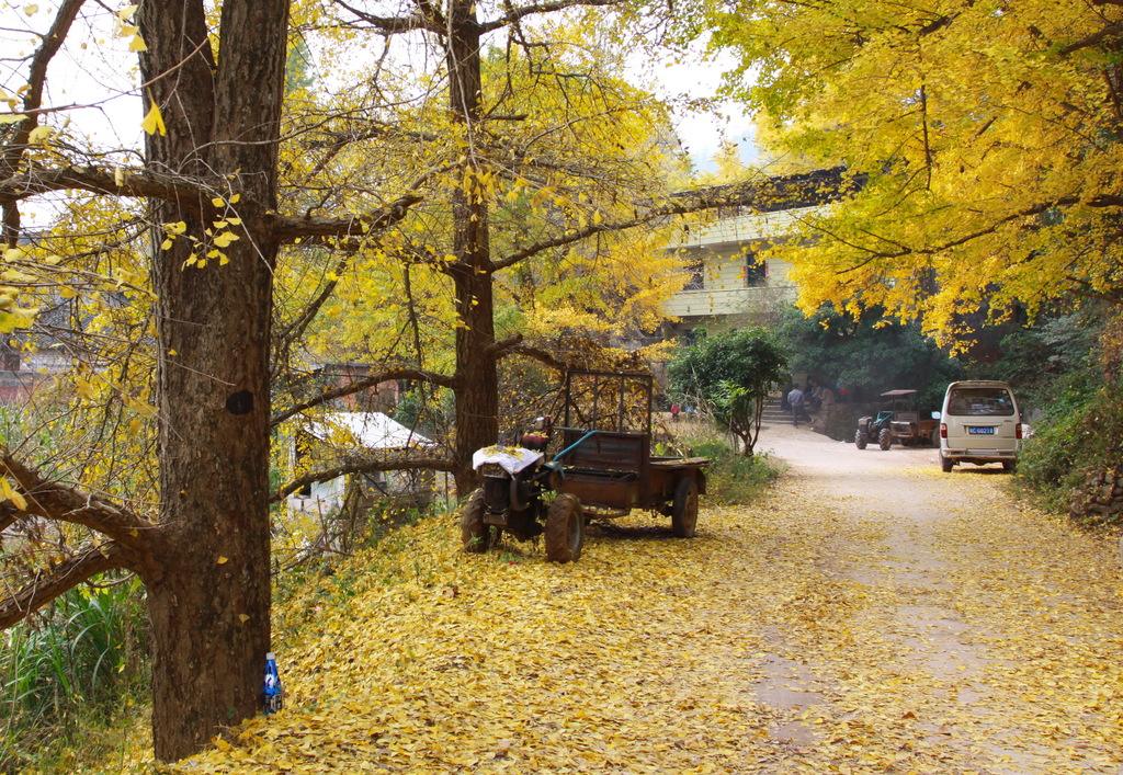 海洋山乡的村民热情好客,“鸡黍”相邀,既显田家特有风味,又见待客之简朴。近处银杏树环绕,远处青山横斜,可似一幅清淡的水墨画亦可似浓烈的秋日油画。