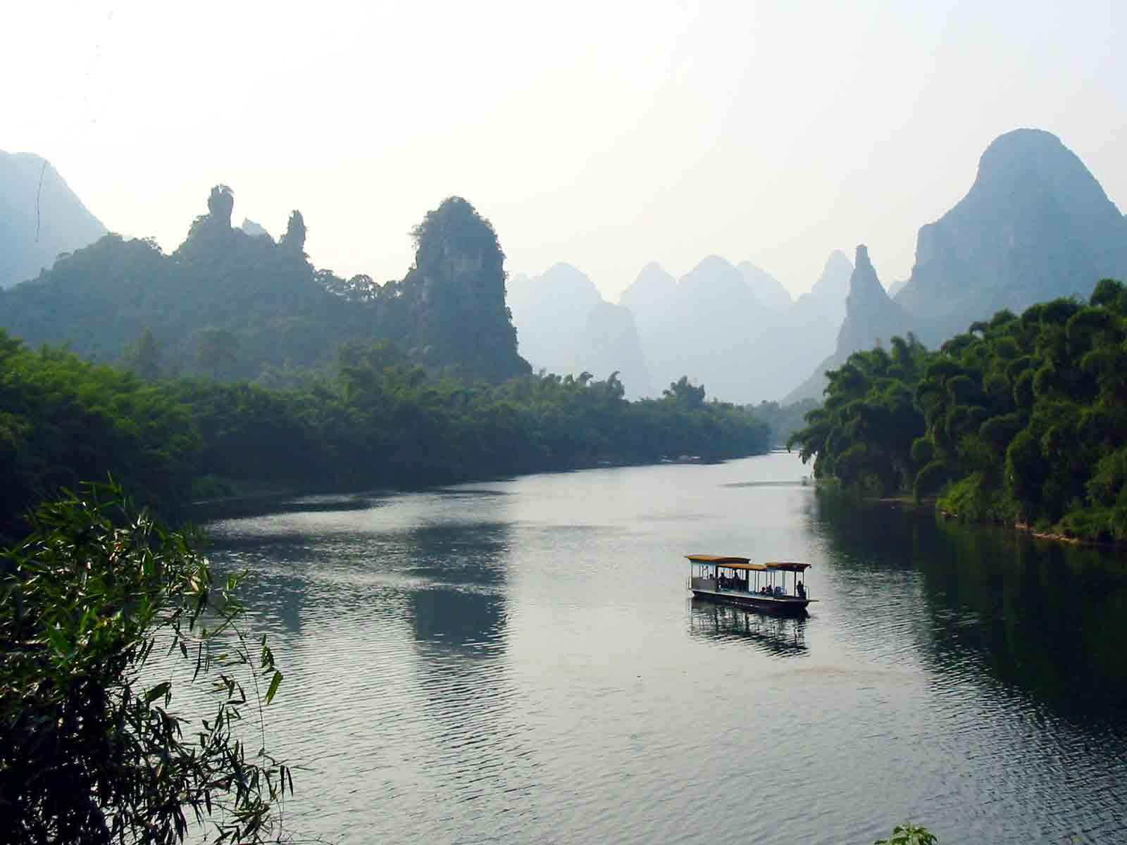 武阳江上,两岸翠竹青青,奇峰异彩目不遐接,山村炊烟袅袅;江水清澈见底,水中嬉戏的鱼儿清晰可见;舟行江上,水面波光粼粼,变化无穷。