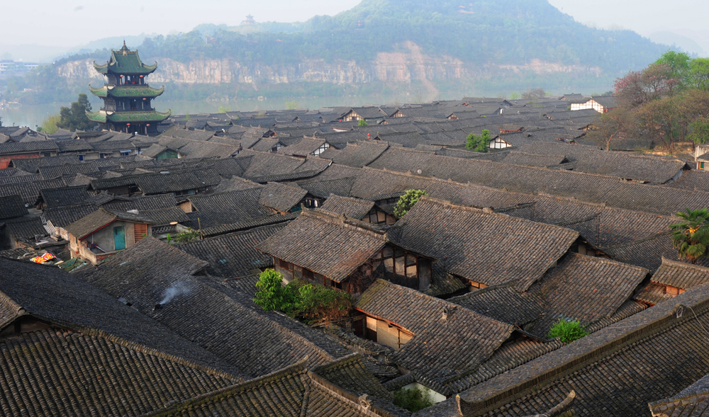 阆中四面山形如高门,故名阆山,嘉陵江流经阆山,故名阆水,城在阆山阆水之中,故名“阆中”。