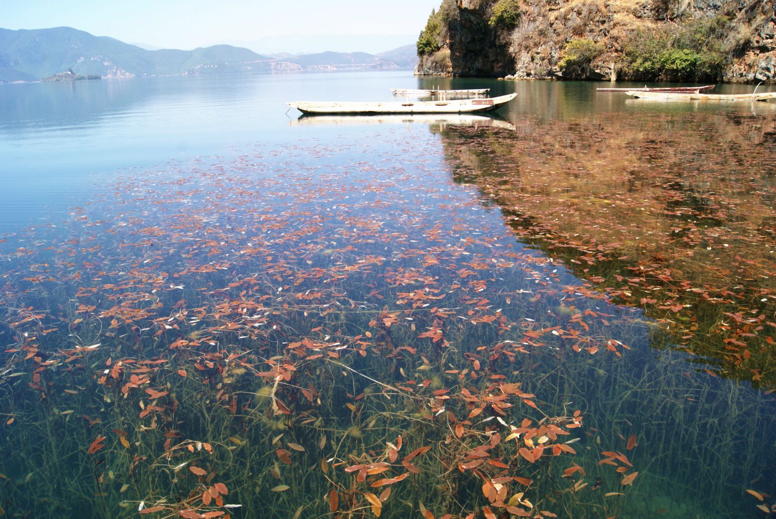 泸沽湖是一个美丽的梦。平静的湖面上,游动着朵朵白云,倒映着巍巍青山。分不清哪里是天,哪里是岸,湖水轻轻荡漾,倒影相互渲染,幻化着色彩,涂抹出诗一般的美景。