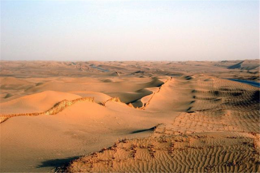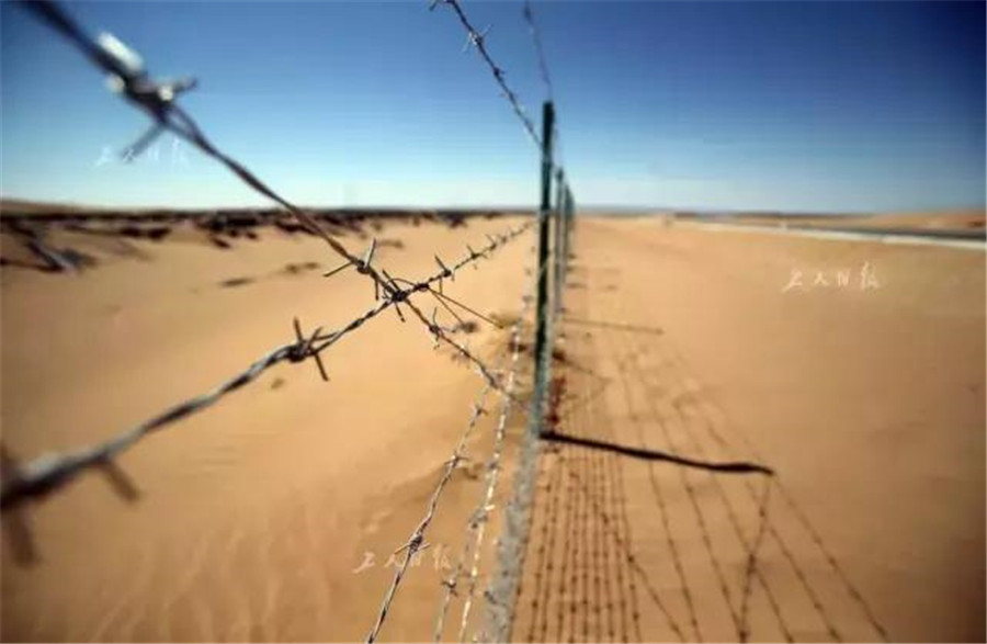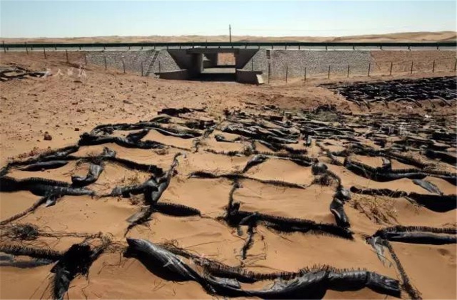 在穿越沙漠路段,有鳍形沙袋防风固沙
