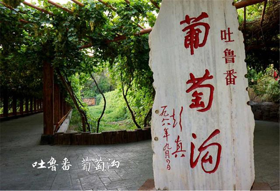 从吐鲁番市遥望火焰山,赤砂灼灼,草木不生。但葡萄沟,却别有洞天,景色秀丽。一进沟口,铺绿叠翠,茂密的葡萄田漫山遍谷。溪流、渠水、泉滴,给沟谷增添了无限诗情画意,葡萄沟成了"百花园"、"百果园"。