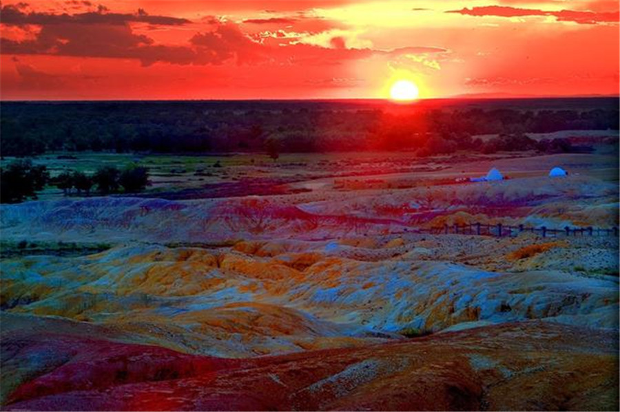 五彩滩位于新疆北端,兼有火(日出日落)、土(雅丹地貌)、金(巨型风车)、水(碧蓝河流)、木(河谷秋林)之美。五彩滩是典型的雅丹地貌,所不同的,便是它绚烂的色彩和诡异的形态。