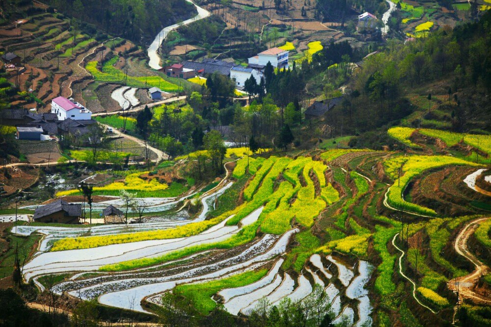 安康漩涡镇凤堰古梯田主要包括凤江梯田和堰坪梯田,位于汉阴县漩涡镇的黄龙、中银、茨沟、堰坪四村。从汉阴往漩涡镇方向沿盘山路到山顶(海拔1400米),就可看到整个山谷里的层层梯田,连片共1.2万余亩,海拔500~600米之间,是一处规模较大、自然风貌保存完好的梯田群。