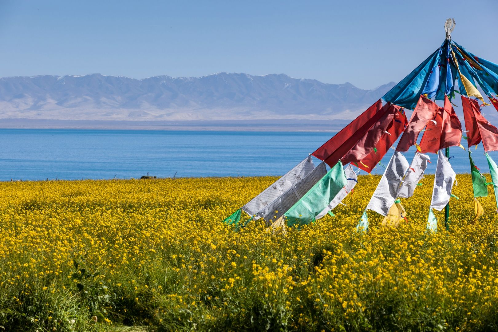 青海有太多梦中的景象,金黄的花海、耀眼的雪山、似海的碧水,恍然间,以为自己走进一场梦境。