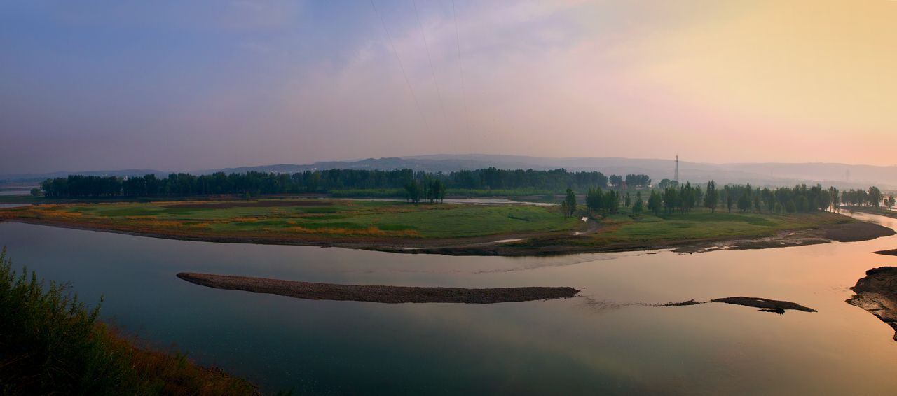 娘娘滩地势平坦,绿树成荫,岛上人家,环水临被,有着如诗如画般的田园美景。两侧河面开阔,水流平缓。西看茫茫黄河,天水无际,咆哮千里,使人心旷神怡,流连忘返。