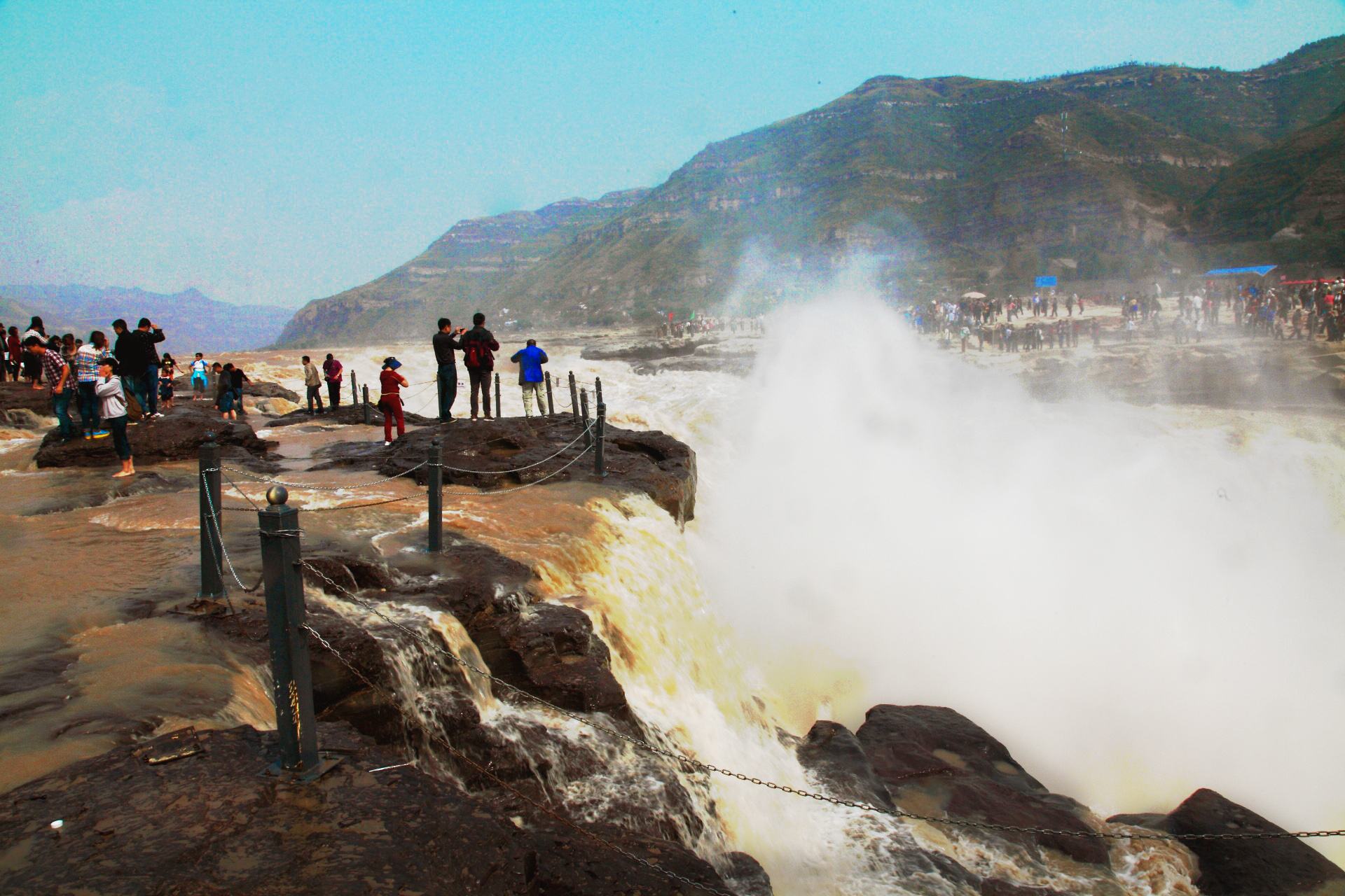 黄河在此由河宽300米收窄为50米,飞流直下,骇浪翻滚,如千军万马奔腾怒吼,声传数十里外,其排山倒海的雄壮之势,素有“不观壶口大瀑布,难识黄河真面目”的盛誉。