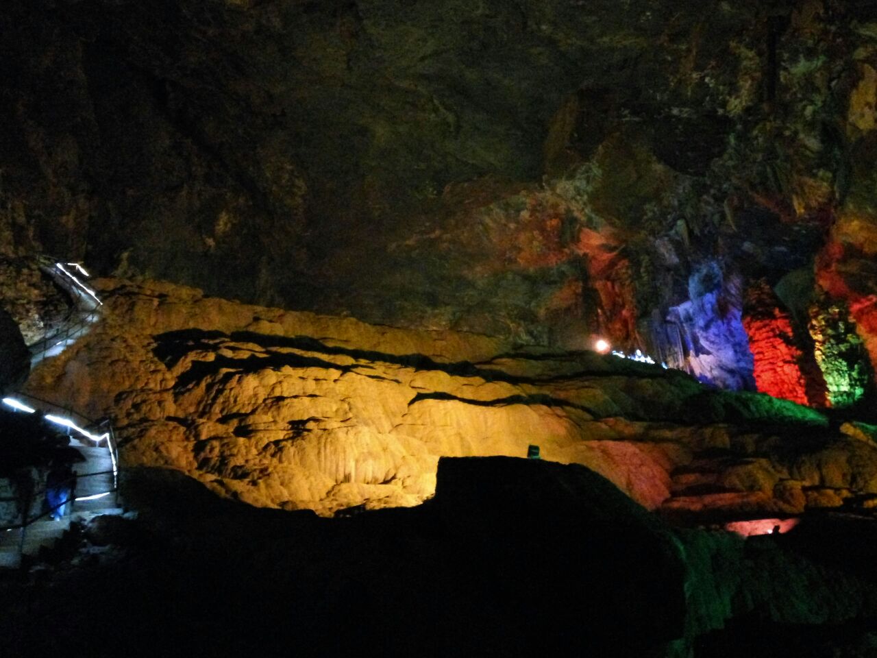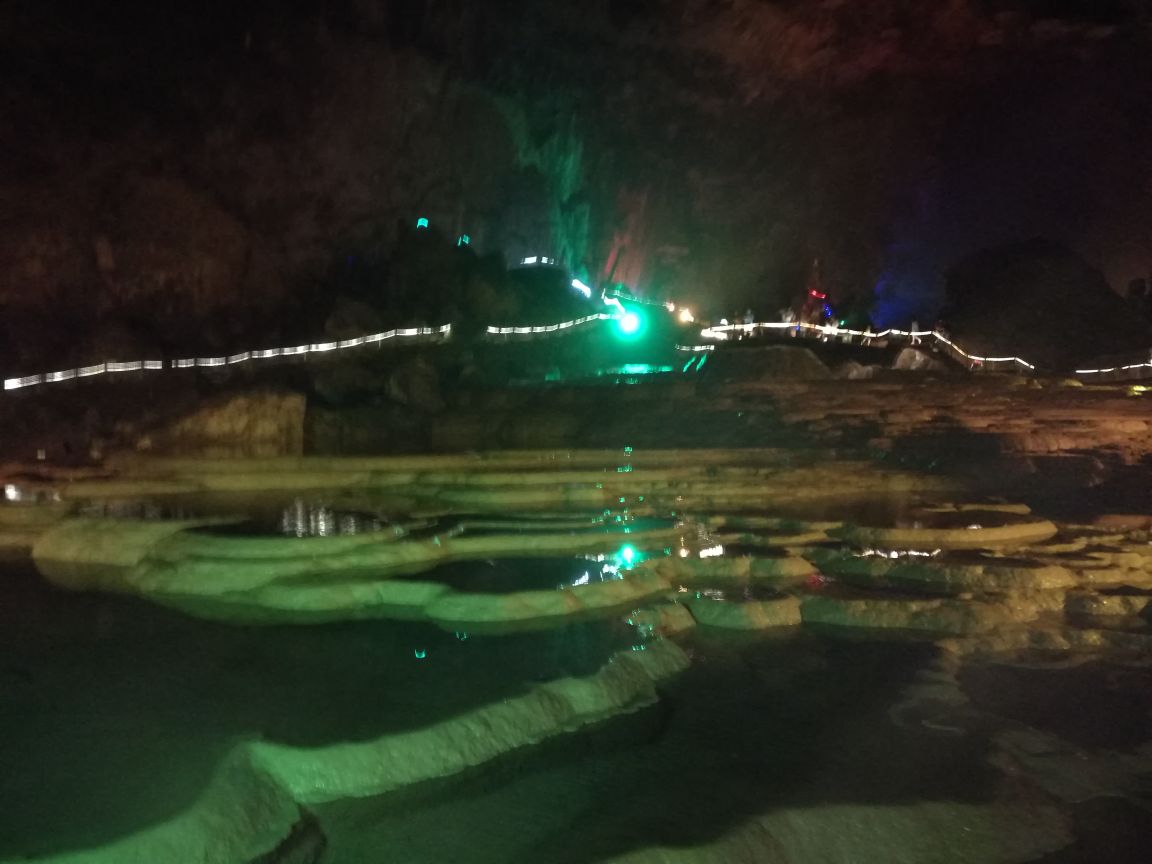 洞内钟乳石比皆是,形态各异,石针、石矛、石笋、石柱、石幔、石瀑,分别呈红、黄、白、褐等色,如玉似翠,景致诱人,色彩绚丽,扑朔迷离。