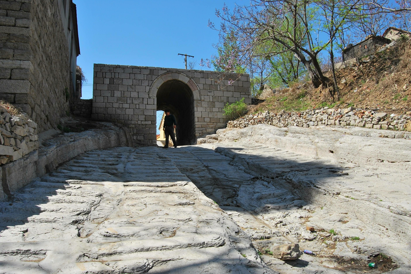 齐长城规模最大的关隘——青石关。该关形似城堡,长宽各百米,有南、北、西三座城门楼。西门通往今博山区的樵岭前村;南门上方曾经镶嵌着“青石关”石匾,现保存在关门东侧的民屋墙上;北门顶原建有重檐的玄帝阁,现仅存阁基,阁基下就是北门洞,门洞外是整块岩石构成的斜坡。这种在当地被称为“青石”的岩石,硬度很大。