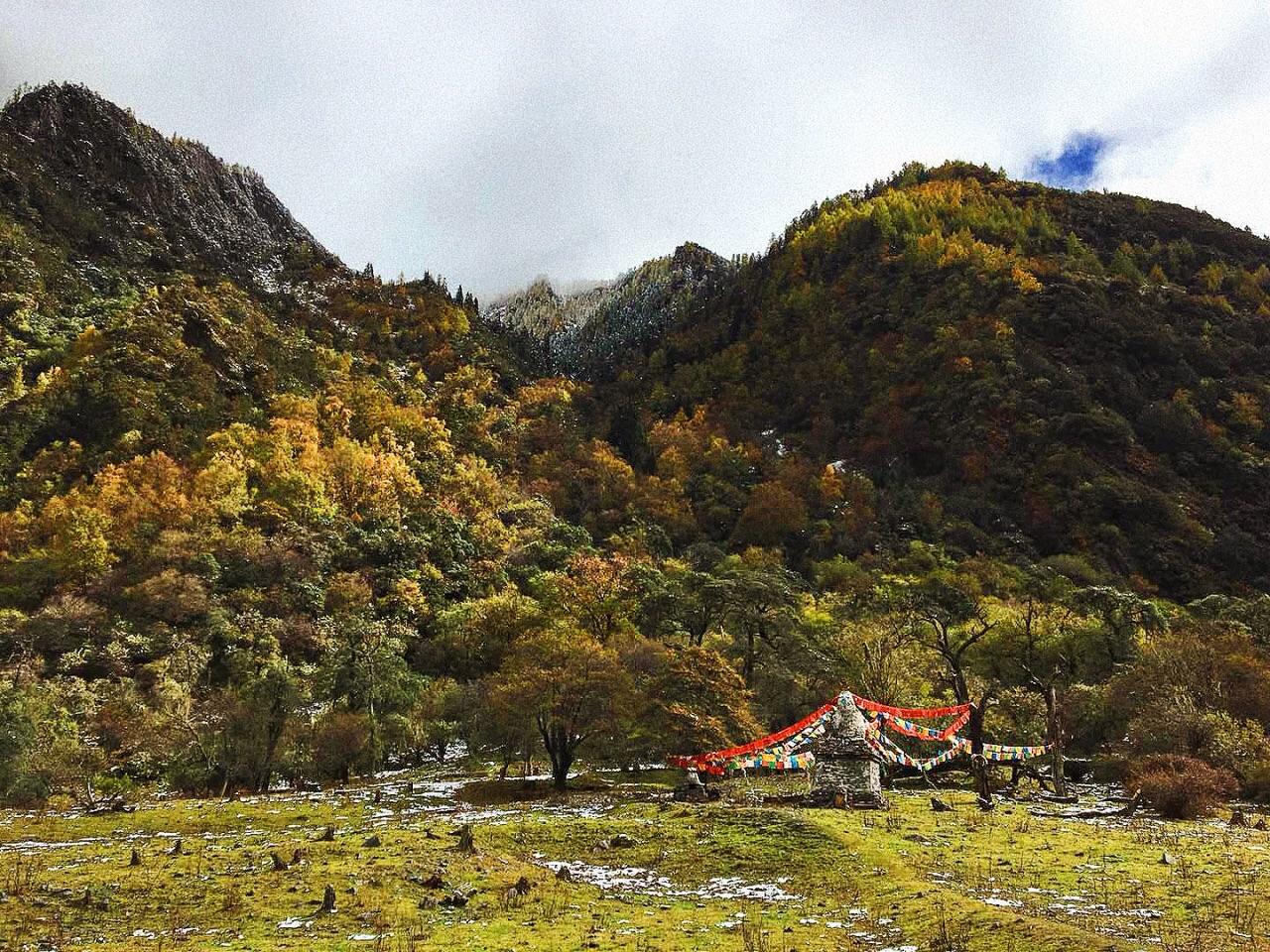 达古冰川山顶已经是凛冬,山脚下的秋色才刚开始向上蔓延。