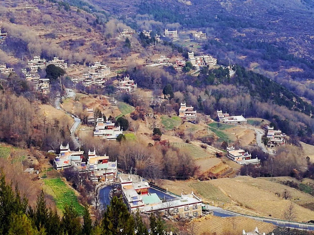 夏季山头开满了紫色、粉色、蓝色、黄色、白色的野花,坐在芬芳的草地上可以俯瞰到坛城的全貌。佛塔、寺庙、经幡、河流及伸向远处的小径与坛城一起,共同构建成了一个具有独特自然与人文风格的藏寨。